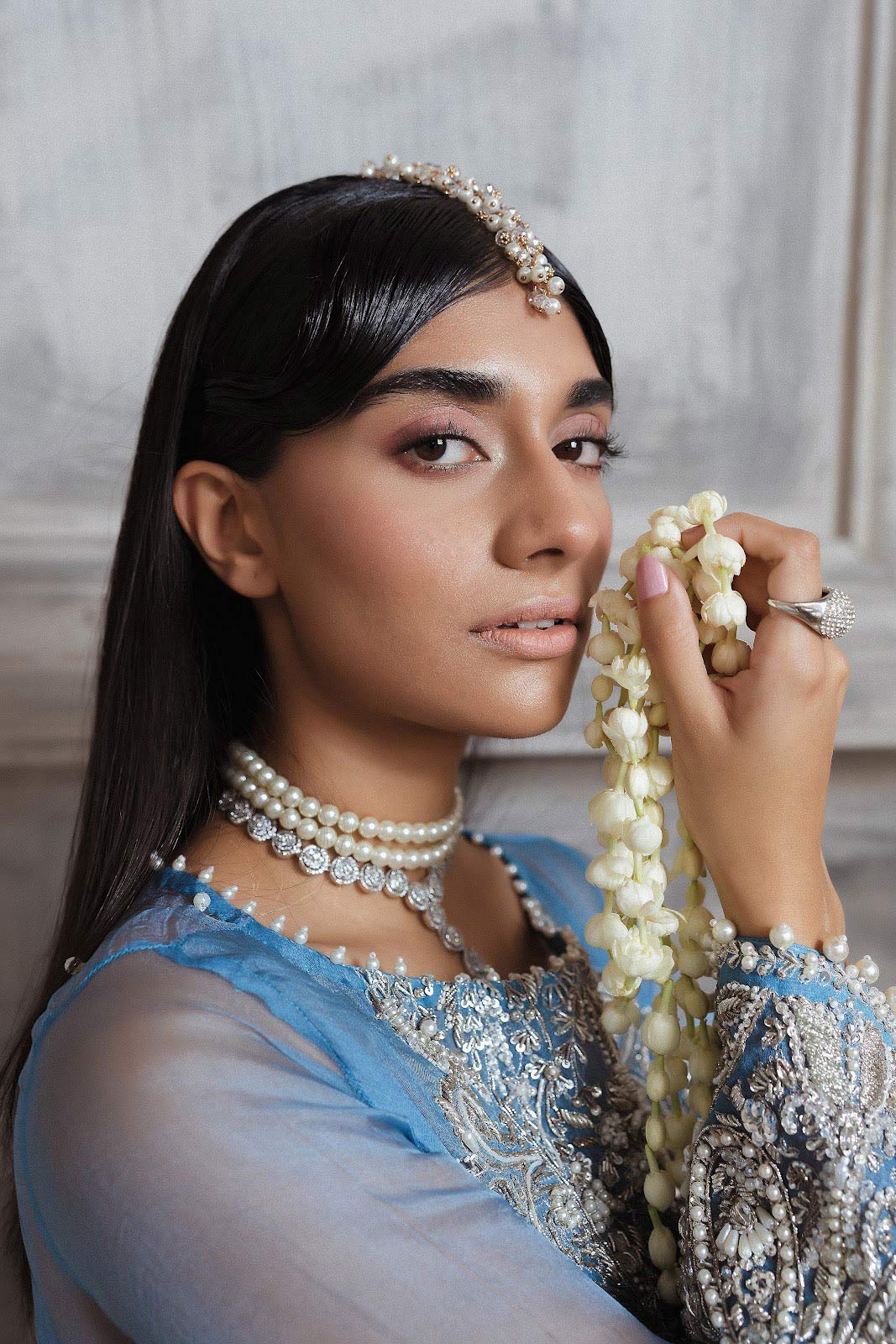 Laguna has taken inspiration from the deep and intense sparkle of the ocean. This clear hue with glittering details injects energy and style into the whole look.