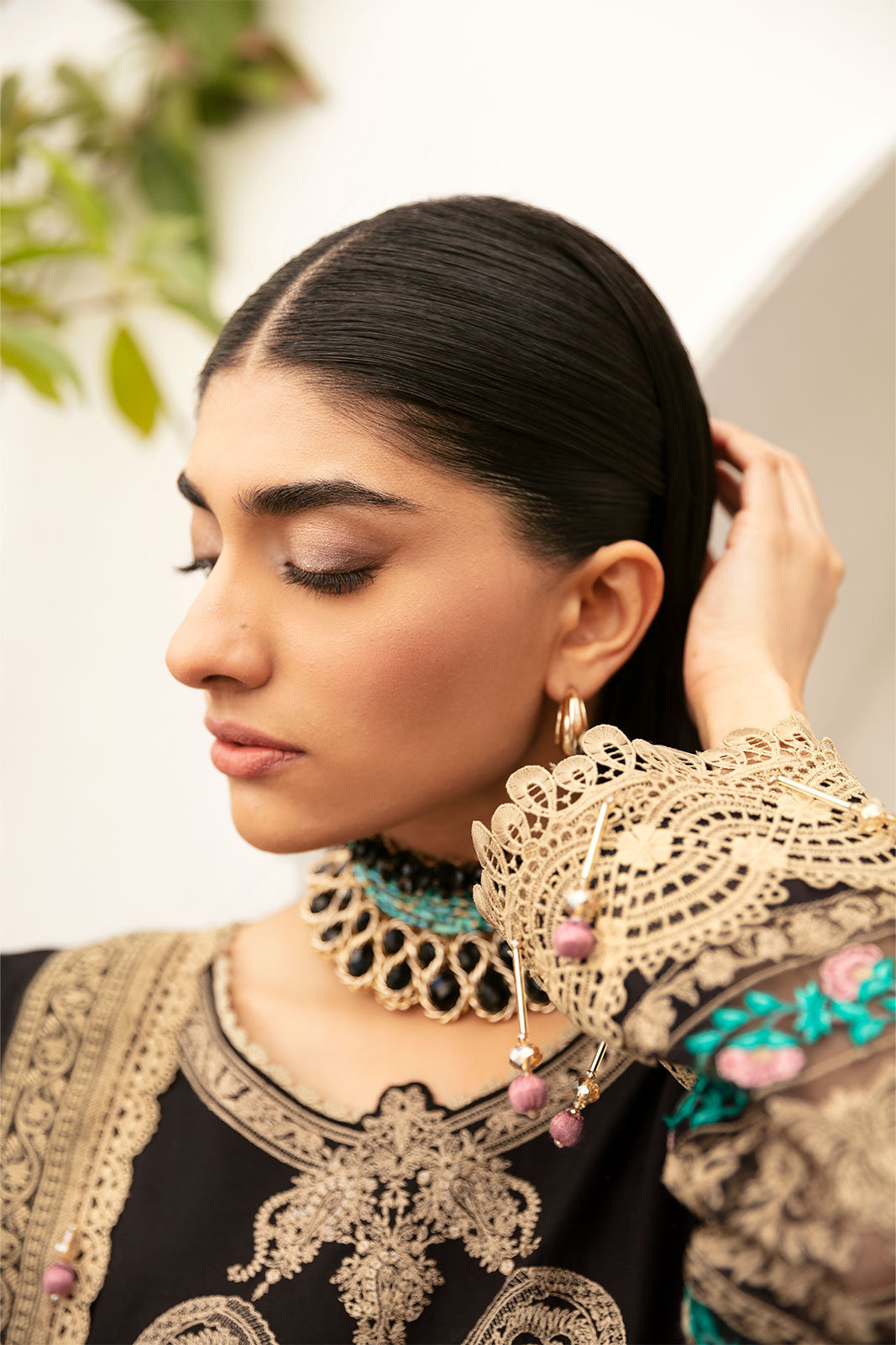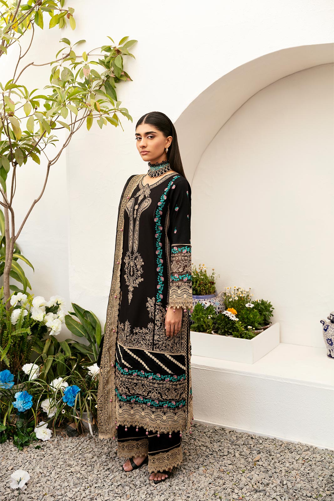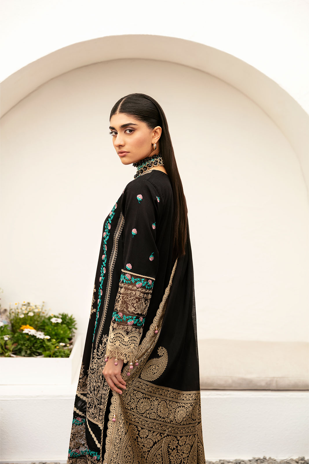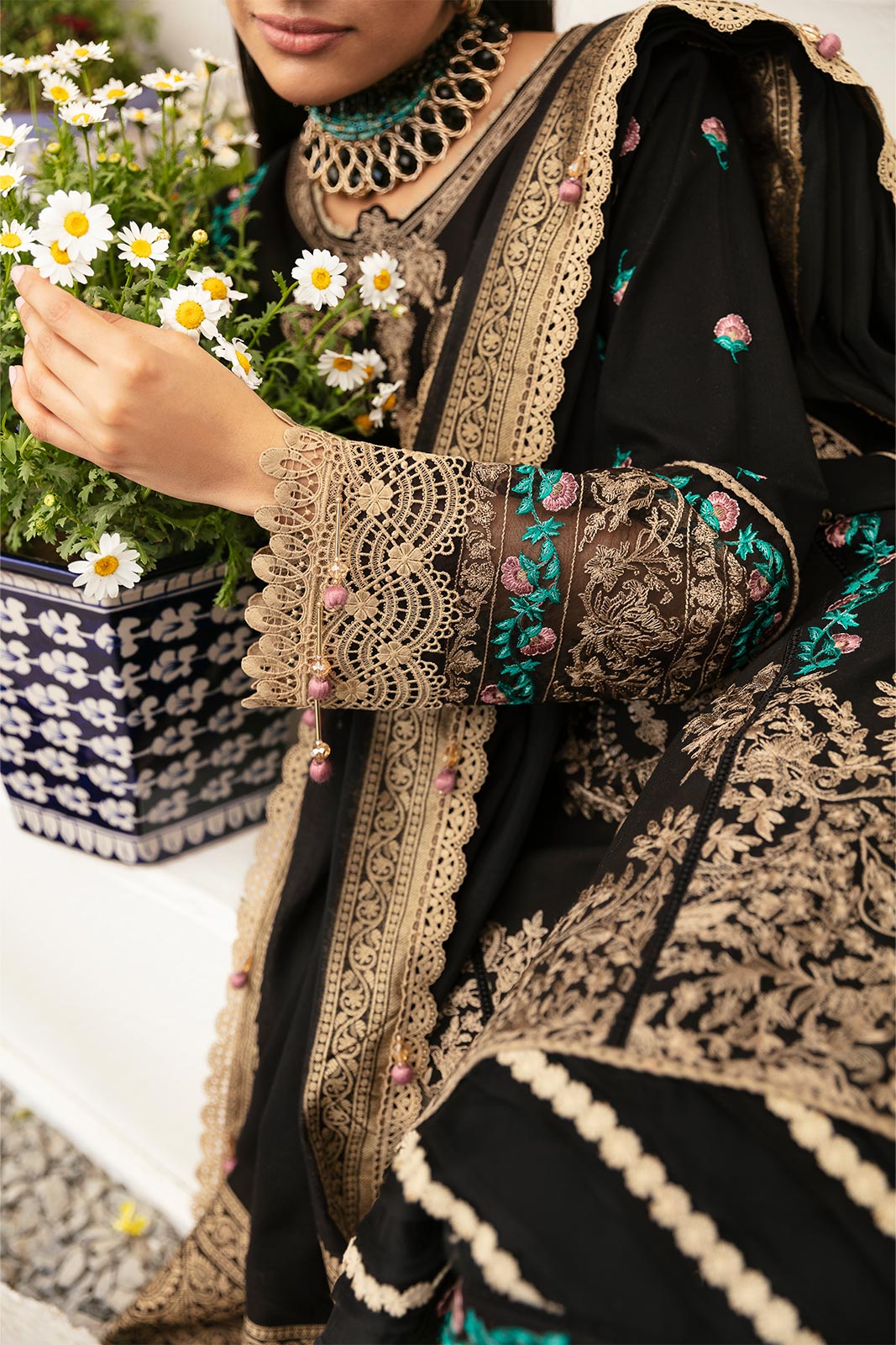Emb shirt & sleeves border (organza) 2.5m