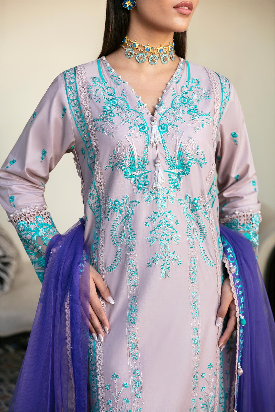 Emb border shirt & sleeves (organza) 2m