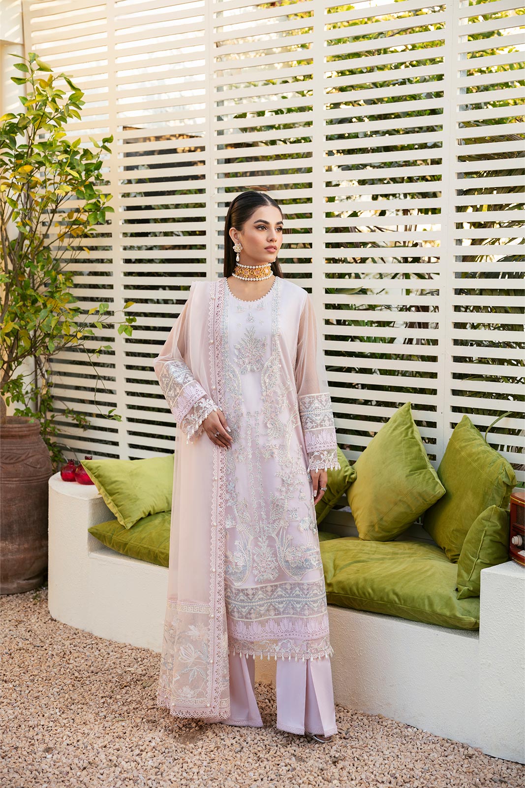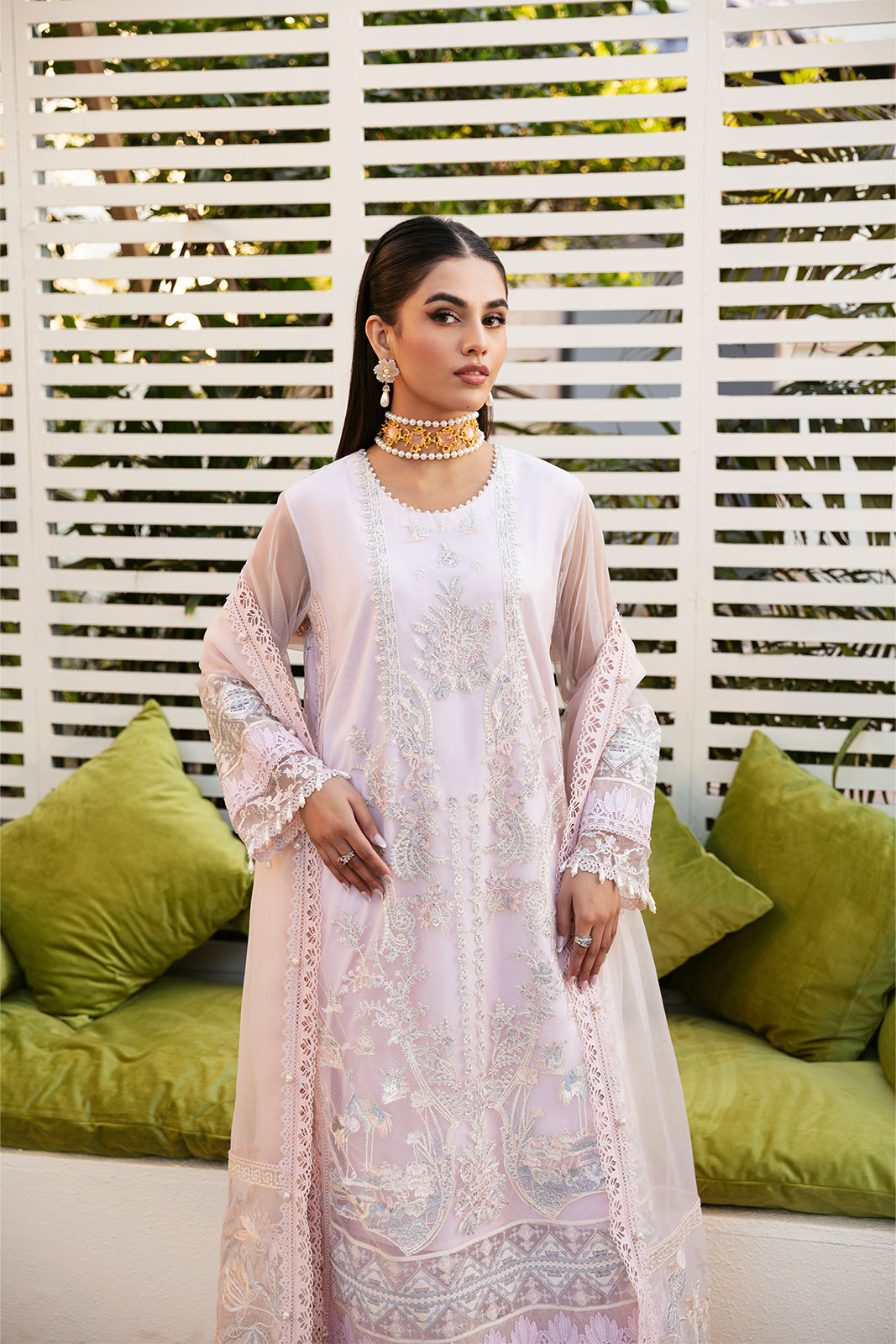 Emb shirt & sleeves border patta (net) 4.5m