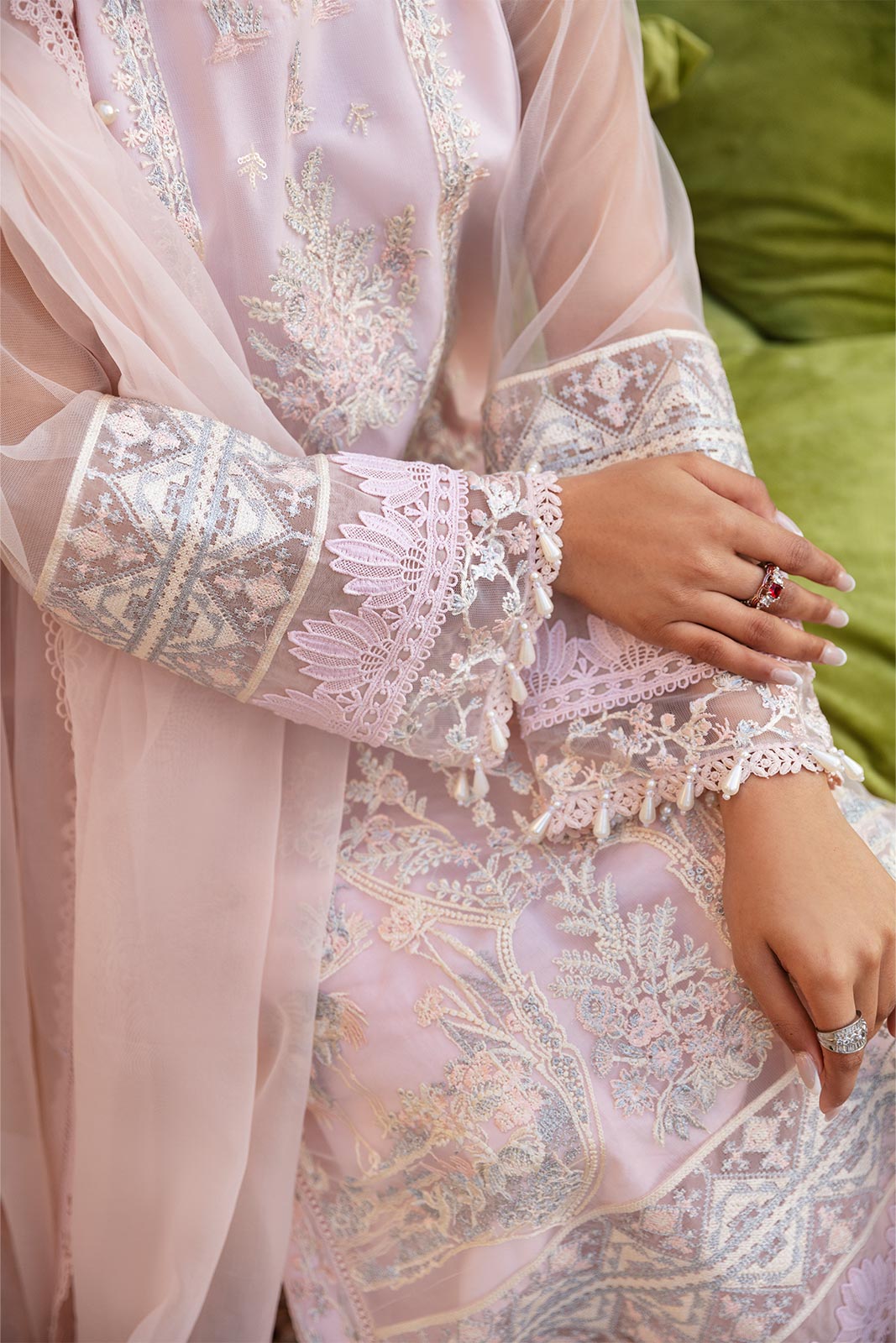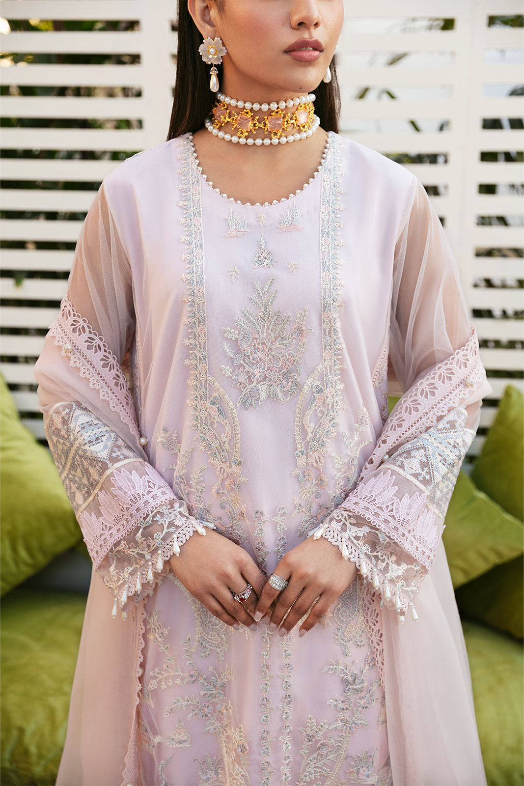 Emb shirt & sleeves border (organza) 2.3m